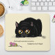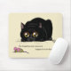 Black cat about to pounce and do the "kitty butt wiggle". Toy mouse near the black cat.