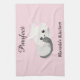 A lovely kitchen towel, this item features a pink background with a lovely white kitty cat. "Purrfect" is written on the top with personalization on the bottom. Purchase yours today!