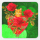 Orange striped cat peeks from behind a red heart, roses, and gold butterflies. Great way to say I love you to your cat loving friend, or give as a valentine to your fans of everything feline.