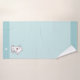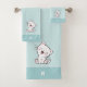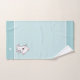 Chat kitty mignon et monogramme sur le kit de serviettes de bain bleu clair.