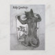 Word on note card note "Kitty Greetings" but can be changed to make your own custom greeting card message. Art features a pencil sketch of a black cat leaning over a goldfish bowl. Make your own custom cat lover gifts with personalized messages!