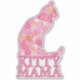 Sticker in a silhouette of an elegant cat in a soft pink and peach fractal swirl pattern,sitting on the words "Kitty Mama" in pink outlined in fuchsia
