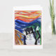 A lighthearted comical tribute to the stress of life. The swirling sky and sea capture the haywire moment when you realize that you just lost any illusion or hope of control. Inspired by Edvard Munch's, "The Scream." Rendered in gouache.