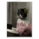 Cute cat dressed in pink linen and white lace gown with graduation mortar on her head