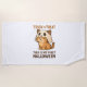 kitty wearing a mask ready for his first Halloween Beach Towel