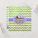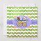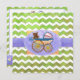 Cute Baby Carriage Green Zig Zag Baby Shower Gifts and Accessories by ITD Colours Galore features our unique candy colour lime and white zig zag pattern with our signature texture in the background with a textured purple band and decorative centerpiece featuring a cute vintage baby pram holding a cuddly teddy bear. On the back the chevron pattern continues with a purple band that has a pattern of cute baby toys running along through it. Keep track of all your baby's first, starting with your chevron Kiwi Bash baby shower.