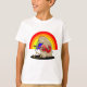 A cute cartoon illustration of of a kiwi playing a song on an acoustic guitar, under a rainbow. The sticker on the guitar reads waiata, this is Te Reo / Maori language for song.