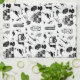 A black and white pattern with images from a classic New Zealand / Aotearoa summer holiday.This design has NZ native birds, pohutukawa and kowhai flowers and other items that make a classic kiwi summer.