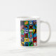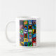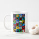 A coffee mug with a grid of kiwiana objects pictured in it on each side of the mug. © Radenbrea Studios at Zazzle, A great mug to give as a gift, or for anyone who loves New Zealand.