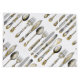 A beautiful illustration in FAUX gold and silver of knives, forks and spoons with arum lily, roses and grass etchings on them. IDEAL FOR - chefs, catering specialists, restaurants, hotels, resorts and cooking schools