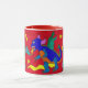 Dream of fantastic knights & dragons with this mug designed by Christian Tresierras! His vibrant, hand-drawn illustration features two colorful knights surrounded by lightning bolts and stars as they battle a fierce blue dragon!