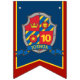 Knights medieval shield themed red and blue Happy birthday 10th flag party bunting. Personalize with your child's birthday year. Currently reads Happy 10th Birthday. Matches other items in the Knights medieval shield collection. Features a regal shield in red and blue design. All original art and design by Sarah Trett. www.sarahtrett.com for www.mylittleeden.com