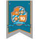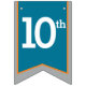 Knights medieval shield themed grey, teal and orange Happy birthday 10th flag party bunting. Personalize the regal shield crest with your child's birthday year and name. Currently reads Happy 10th Birthday Chase. Matches other items in the Knights medieval shield collection. All original art and design by Sarah Trett. www.sarahtrett.com for www.mylittleeden.com