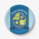 Boys knights medieval shield birthday party disposable party paper plates. Personalize with your own birthday boys name and age. Currently reads Happy 5th Birthday Alexander. Ideal for childrens knight and maidens birthday parties. Matches other items in the knight shield medieval party blue, green and grey range. Original art and design by Sarah Trett. www.sarahtrett.com for www.mylittleeden.com