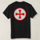 Features the Knights Templar symbol (the Templar Cross) with the Templar name in a circular fashion around the symbol on the back and front pocket of the shirt.