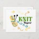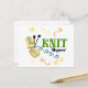 Designed to be "to" or "from" a knitter - this funny postcard is self-explanatory whether you're a yarnaholic or not. This quirky little design carries the timeless phrase "Knit Happens". The saying is written in green and black mixed typography. The design features a ball of variegated yarn in teal blue, vanilla, mustard and spice together with knitting needles and some wiggly yarn tails. Please browse our store for matching and coordinating gifts for knitters.