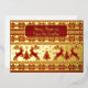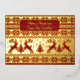 Knitted Gold Deers and Christmas trees on red bg