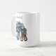 Winter-themed arrangement with a cozy and stylish feel. At the centre is a thick, knitted scarf in a blueish-grey hue, tied into a large, decorative bow. Snowflakes and pine branches are scattered around, enhancing the winter vibe. Alongside the scarf is a pair of rugged, brown-laced winter boots, suggesting outdoor wear. There are also a couple of autumn-coloured leaves (golden brown), creating a seasonal transition between fall and winter. This mug makes a beautiful gift for girls, mother, teacher. Personalize this beautiful mug to be unique with your name.