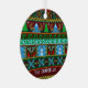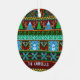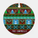 This festive double-sided holiday ornament is the perfect way to personalize your Christmas tree. The original, repeating pattern is made to resemble a knitted Ugly Christmas Sweater design. The cute pattern includes reindeer, trees, mountains, snowmen, mistletoe, snowflakes, birds and more. The colors are all pretty shades of red, green, blue and golden yellow.
