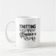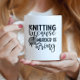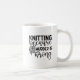 This mug is perfect for any knitter who loves to spend their time creating beautiful things with yarn. The saying "knitting because murder is wrong" is a great way to show your love of knitting and your sense of humour.