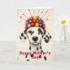 🖤 A whimsical and shabby chic Dalmatian. With its classic black and white spotted coat, this delightful pup is wearing a hat made entirely of colourful yarn balls topped with knitting needles, creating a fun headpiece that adds a touch of quirky personality. The soft, distressed wooden background, lightly speckled with colourful paint splatters, enhances the rustic and artistic feel of the image. The artwork closely resembles an oil painting, with rich textures and a beautifully hand-painted effect...………......... 🖤 NOTE 1. All items with this particular design share my unique identifying “Letter/s Number/s” label in the title for easy searching
