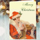 Vintage woman in Santa Suit knitting for Christmas