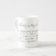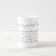 This mug is imprinted with a Bach Solos Suite for Cello. It was purchased as a thank you gift for a professional cellist friend who often performs this work. The cup is made of a high-grade ceramic and is fairly light. The walls are not too thick and it is a small to medium size. It's well finished, has a high-gloss glaze, and looks very elegant. The Bach Solo Suite score on the example I received was clear and had high contrast. Even though the staffs were small, the music was easy to read. The cellist who received this cup immediately knew what the music was as soon as she set eyes on it.