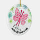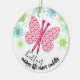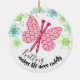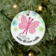 Pretty knitting needles butterfly with balls of yarn snowflakes on this Christmas ornament for your favourite knitter.