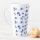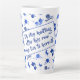 White latte mug with all around blue pattern of knitting needles, balls of yarn and cats pulling yarn. The sample text reads, “I’ll stop knitting after they row”, she lies to herself. Lots of fun knitting sayings can be found online so add your favorite to the space. If you need help fitting the wording e-mail me, or use the “customize further”. Choose either the small or tall latte mugs.