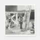 Knitting lifeguards and a dog on Venice Beach, Los Angeles, California. No date with photo but probably 1910s or 1920s.