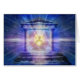 Stairs in forefront leading to temple with sitting meditator with radiant colours emanating and stars in space background. By Daniel B. Holeman. Dedicated to the Sacred Heart of ALL.