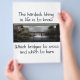 Remember not to burn bridges you should cross, or cross bridges you should have burned! Remind yourself or someone you care about with this elegant design featuring a misty mountain scene with a silhouette of a Japanese foot bridge.