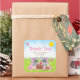 This cute and whimsical sticker features adorable koala bears having a picnic on a pink gingham cloth with treats such as honey, watermelon, strawberry jam, lemonade and pie. In the background is a bright blue sky and sunshine, butterflies and daisies. The text combines decorative and serif fonts for a stylish and modern look. This is perfect for a spring or summer birthday party.