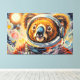 This vibrant artwork by Otis Porritt presents a charming koala, rendered in a striking impasto style, donning a full astronaut suit. Its fur bursts with warm hues of orange, red, and yellow, contrasting with its distinctive blue nose and wide, curious eyes peering from within the helmet's visor. The koala's orange spacesuit features metallic blue accents, while the cosmic backdrop is a rich tapestry of deep blues and purples, dotted with luminous, colourful planets and a prominent, textured moon. Thick, expressive strokes create a dynamic sense of movement and depth, giving the digital piece a tactile, painterly quality.
