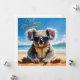 Koala sitting on a sandy beach wearing sunglasses. "Merry Christmas" greeting on front
