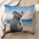 Koala on a sandy beach throw pillow