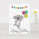 Birthday greeting Happy Birtday with balloons and koala for children's birthday. A fun, colourful card for a child's birthday. For friends who love koalas.