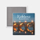 Night photo of the Baldwin Bridge "Balduinbrücke" in Koblenz, Germany. Photo © Sebastian Worm.