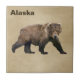 Features a digital painting of a Kodiak Bear on a neutral parchment, or old paper, background. Text reading "Alaska" also appears. The Kodiak Bear (Ursus arctos middendorffi), a subspecies of the brown, or grizzly, bear are the world's largest bears. A full grown male can be over ten feet tall when upright on his hind legs and weigh over 1500 pounds - truly a sight to behold. One bear in the Bismarck, North Dakota zoo was estimated to have weighed as much as 2400 pounds. The bears live on the islands of Alaska's Kodiak Archipelago. Today there are approximately 3500 Kodiak bears and their numbers are increasing due to the generally excellent condition of their habitat including sufficient fist to eat. They are called "takuka-aq" in Alutiiq, the language of the people's native to that area. The bears are believed to have been isolated there since toward the end of the last Ice Age over 12,000 years ago. Though they are the largest terrestrial carnivore their diet includes large amounts of grass, other plants and berries. Today there are approximately 3500 Kodiak bears and their numbers are increasing due to the generally excellent condition of their habitat including sufficient fish to eat. Due to the abundance of food resources Kodiak bears have smaller home ranges than any other brown bears and have no need to defend territories. The Alutiiq people hunted bears for food, clothing and tools. Arrows, spears, and a great deal of courage were required hunting equipment. Bear heads were usually left in the field as a sign of respect to the spirit of the bears.