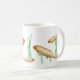 This simply designed mug features delicately coloured orange and white koi fish swimming through a sea of grass.