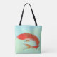 Pretty all over printed tote, with a lovely illustration of a golden orange Koi fish against a blue green background. Customize to add your own text.