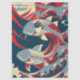 Koi Fish in Great Wave Style with Red Navy Blue Tissue Paper