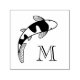 Simple black and white vector illustration of a Japanese koi fish circling an initial. Koi is a brightly coloured carp domesticated in Japan.