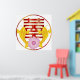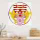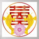 Asian Chinese Calligraphy Text Double Happiness Wedding Symbol with Koi or Carp Gold Fish Pair and Pink Lotus Flower in Eternity Circle Festive Illustration Drawing Poster