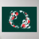 A splatter art painting of two koi fish also known as the Japanese carps, swimming in a circle. The traditional Japanese symbol depicts duality and harmony. The Koi fish itself symbolize good luck, abundance and perseverance. Symbolic in Buddhism is to represent courage.