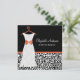 Make a fashion statement with these trendy black and white leopard print bridal shower invitations with a modern wedding gown on a hanger decorated with a girly Koi Orange ribbon tied into a cute bow. This chic animal print invitation can be personalized by adding the name of the bride to be, her wedding colours, and party information to the customizable template text areas. This stylish invite is part of the 2013 Fall Fashion Colour Collection. Flat printed image, not actual ribbon.
