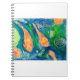 A spiral notebook featuring a peaceful water colour of a koi pond.