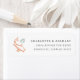 Zen chic return address labels feature elegant charcoal grey lettering with a pale orange koi fish and spring green aquatic leaf illustration. Designed to coordinate with our Koi Pond wedding collection.