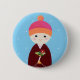 Kokeshi Doll with Camellia 2 Inch Round Button