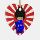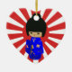 Hand drawn Cute kokeshi doll in blue floral dress on a red and white rising sun background. Fully customizable on the back with your own personal message to make a truly unique gift .Great gift idea for any lover of japanese inspired kawaii designs or collectors of kokeshi dolls